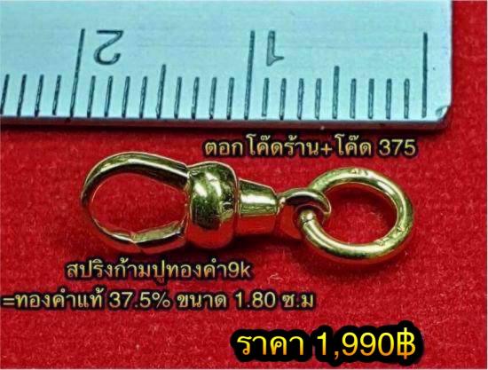 **สปริงก้ามปูทองคำแท้ขัดเงา** แบบไม่หมุน (ขนาดกลางNo.2) ขนาด1.80 ซ.ม. น.น.0.74 กรัม (ทอง9K=ทองคำแท้37.5%=ตอกโค๊ด375) สปริงแน่นๆใช้งานแข็งแรงทนทาน เปลี่ยนพระที่ท่านแขวนสะดวกสบายครับ ราคา@ 1,990.- ไม่ขายจัดมาให้ท่านสมาชิก"วัดใจเคาะเดียวแดง" พร้อมจัดส่ง EMS ให้ครับ.