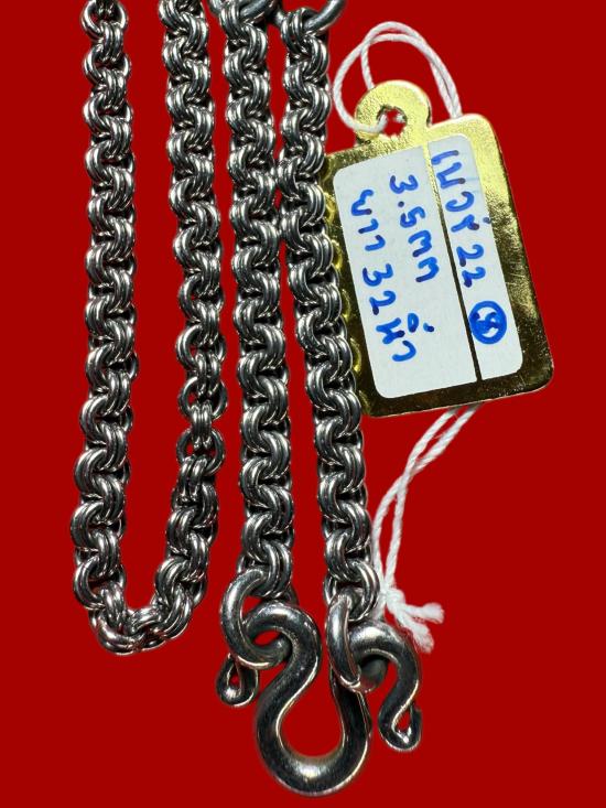 สร้อยแบรน100% ลายห่วงคู่ เบอร์22หนา 3.5มิล ใส่พระได้ 9องค์ ความยาว32นิ้ว สวยๆ ครับ
