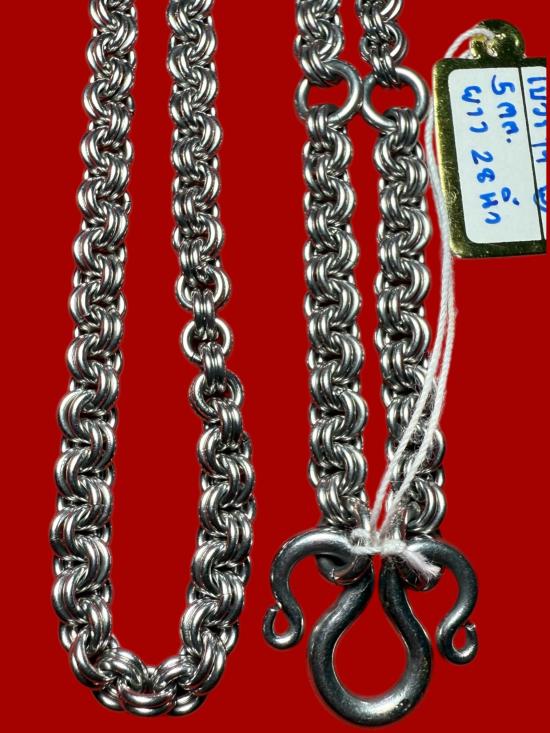 สร้อยแบรน100% ลายห่วงคู่ เบอร์19หนา 5มิล ใส่พระได้ 9องค์ ความยาว28นิ้ว สวยๆ ครับ