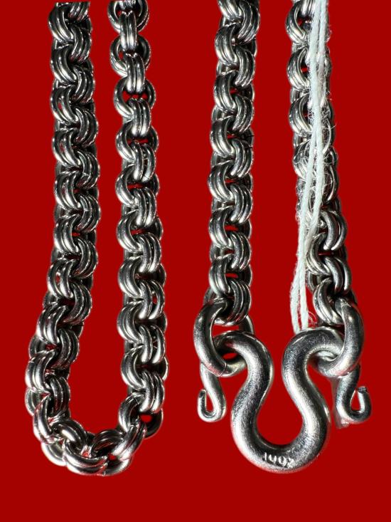 สร้อยแบรน100% ลายห่วงคู่ เบอร์21หนา 4มิล ใส่พระได้ 9องค์ ความยาว 32นิ้ว สวยๆ ครับ(3)