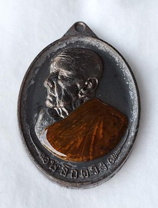 หลวงปู่ขำ เกสาโร วัดบ้านหนองแดง จ.มหาสารคาม รุ่นพลิกดวง เนื้อตะปูสังฆวานร ลงยาจีวร No.349 |