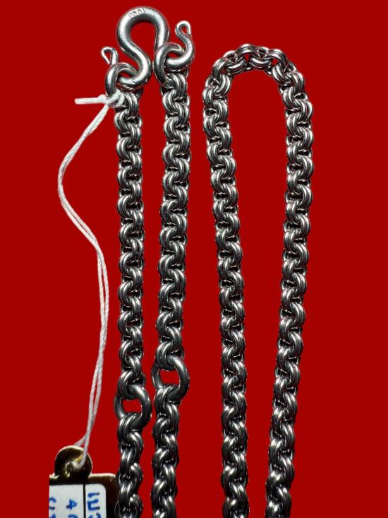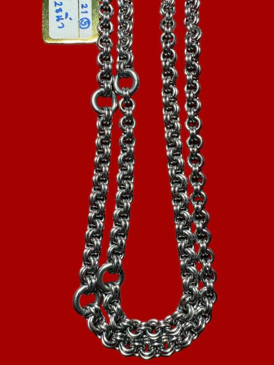 สร้อยแบรน100% ลายห่วงคู่ เบอร์21หนา 4มิล ใส่พระได้ 7องค์ ความยาว 28นิ้ว สวยๆ ครับ
