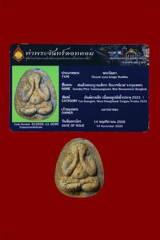 พระปิดตายันต์ดวงเล็ก ปี2523 สมเด็จพระญาณสังวร (เจริญ) วัดบวรนิเวศ_เนื้อผงธูปตังอิ๊วประทุ_ พร้อมบัตรรับรองท่าพระจันทร์ดอทคอม