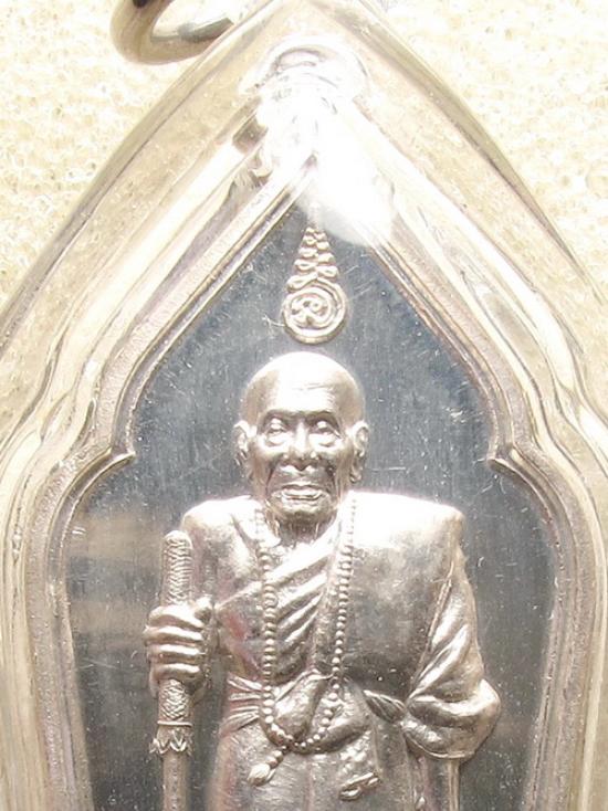 เหรียญเนื้อเงิน พิมพ์ยืน ครูบาอิน ปี 45 (ตัดรุ้ง) เลี่ยมเดิม คัดสวย ระดับประกวด