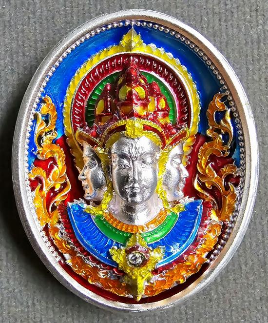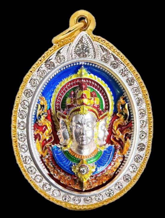 เนื้อชุบเงินลงยามาสเตอร์พีชหน้า-หลัง องค์ชุบเงินลงยา ฝังพลอยขาว เรืองแสง