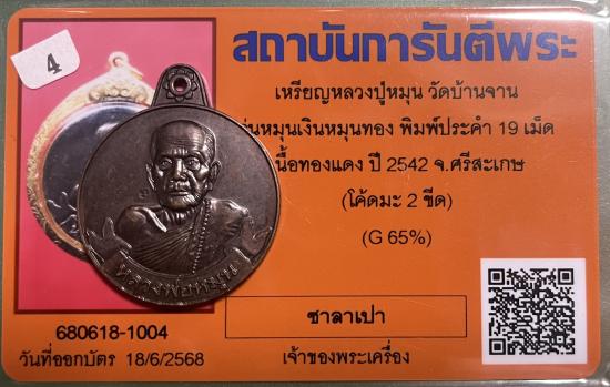 เหรียญหมุนเงินหมุนทอง หลวงปู่หมุน เนื้อทองแดง รุ่นเจริญลาภ ปี2542 บล็อคประคำ 19เม็ด นิยมสุด พร้อมบัตรรับรองจากเว็บ G |