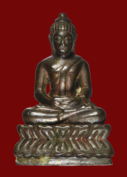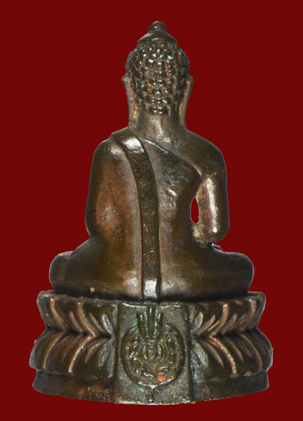 กริ่งพระพุทธยอดฟ้าจุฬาโลก รุ่น 2 ปี 2523 พิมพ์เล็ก วัดเชตุุพนวิมลมังคลาราม (วัดโพธิ์) จัดสร้างโดย มูลนิธิทุนพระพุทธยอดฟ้า เนื้อนวะ ในหลวง รัชกาลที่9 เสด็จฯเททอง หลวงปู่โต๊ะ วัดประดู่ฉิมพลี กรุงเทพฯ เป็นประธานพิธีอธิฐานจิต เป็นพระปางนั่งสมาธิ(ประจำวันพฤหัสบดี) นั่งบนฐานดอกบัว ด้านหลัง ฐานพระ มีตราราชวงศ์จักรี (รูป จักร กับ ตรี)