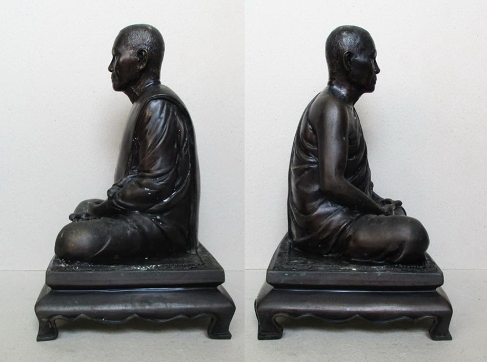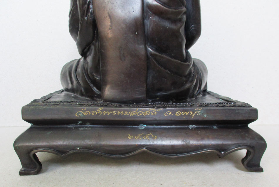 ฐานขนาด 7 นิ้ว X 9 นิ้ว ใต้ฐานอุดปูน ฝังเหรียญไก่ ล่ำซำ และหลอดแก้วบรรจุเศษผ้าจีวรกับเส้นเกศา !!