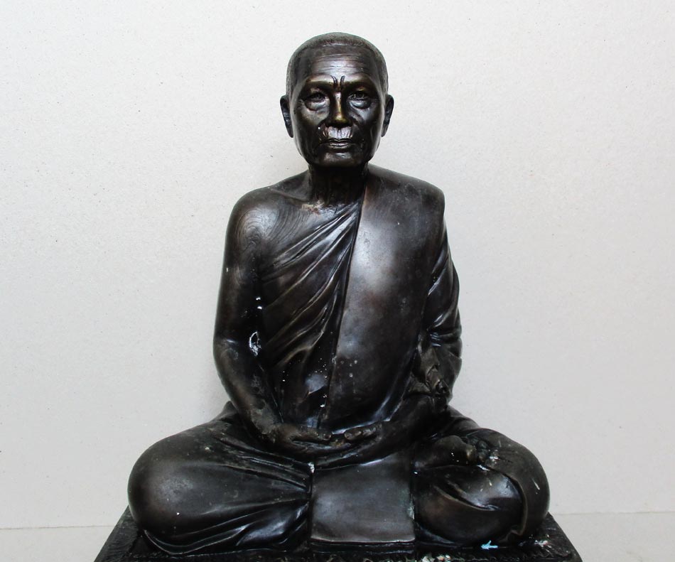 พระบูชารุ่นมงคล 80 หลวงปู่สรวง วรสุทฺโธ วัดถ้ำพรหมสวัสดิ์ จ. ลพบุรี พ.ศ.2556 หน้าตัก 7.5 นิ้ว เนื้อโลหะรมมันปูผิวหิ้ง !!