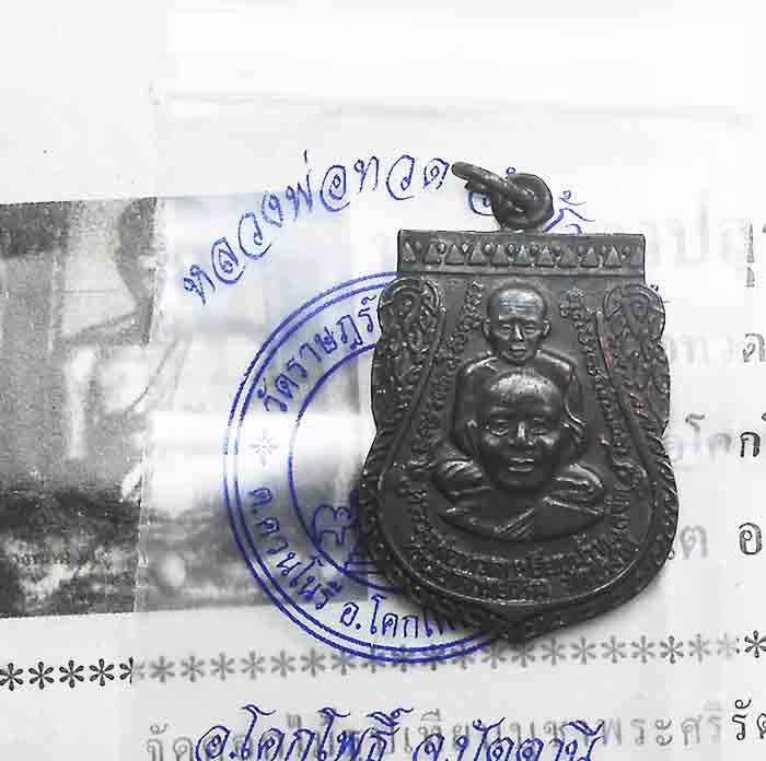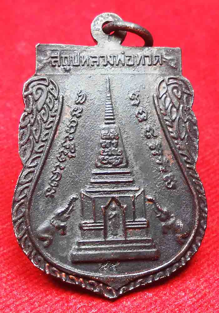 เหรียญเสมาพุทธซ้อนพิมพ์ใหญ่ ทองแดงรมดำ หลวงพ่อทวด วัดช้างให้ หลังอาจารย์ทิม เสาร์ 5 ปี 2555 |