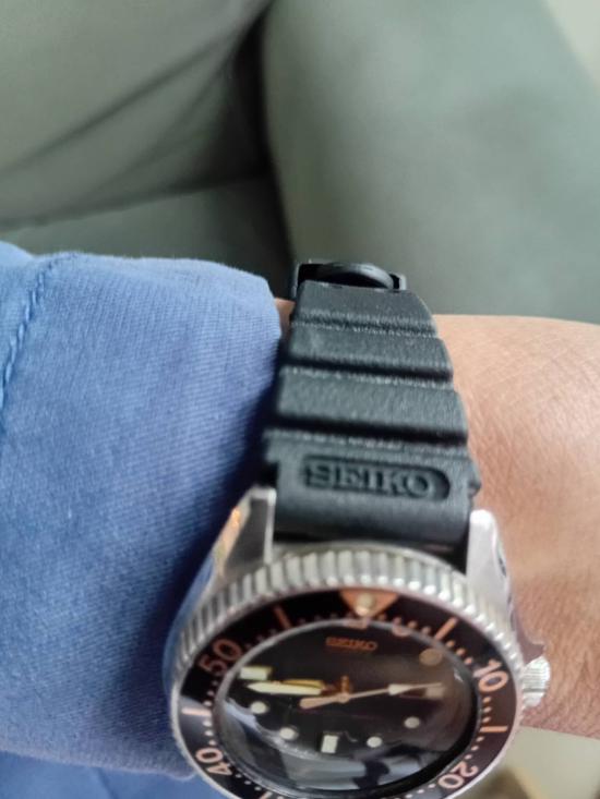 นาฬิกาดำน้ำ Seiko 2625-0010 Mini Diver Vintage Quartz Watch Black Dial ขนาดหน้าปัด 33 มม เรือนขนาดบอยไซค์ พร้อมสายซิลิโคน หน้าปัดสีดำ ตัดสีทองสวย ขนาดสายยาว 18 ซม สายแท้ seiko มีตรา ปรับสายได้