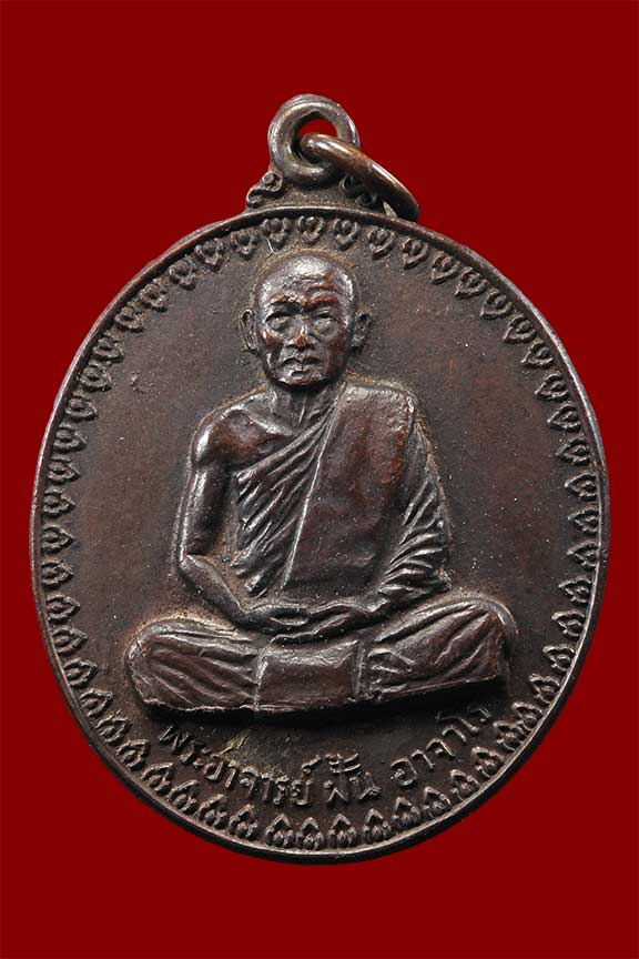 เหรียญพระอาจารย์ฝั้น วัดป่าอุดมสมพร รุ่น 17 เนื้อทองแดง ปี 2514 จ.สกลนคร หลังมีแกะเลข