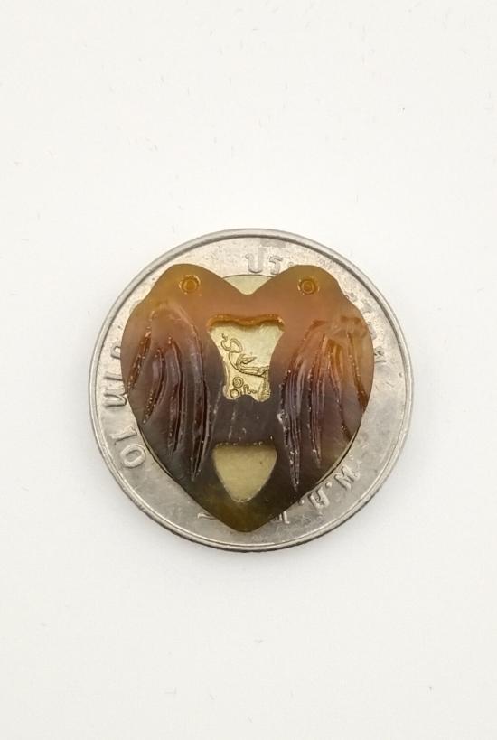 (คัดสวย เคาะเดียว)สาริกาลิ้นทอง หลวงพ่อสิน แกะสลักเนื้อเขาควายเผือก สีทูโทน |
