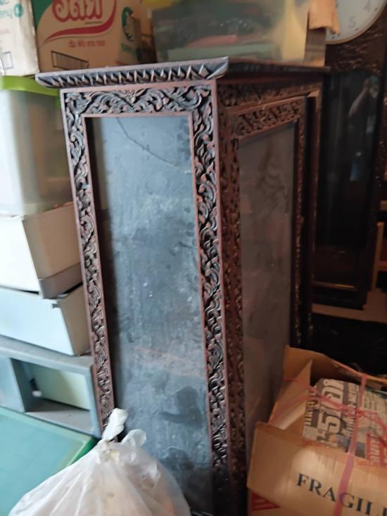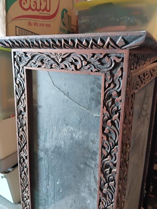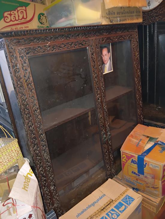 ตู้ไม้สักเก่าแกะลายกนกไทยโบราณขนาด กว้าง35xยาว70 นิ้ว