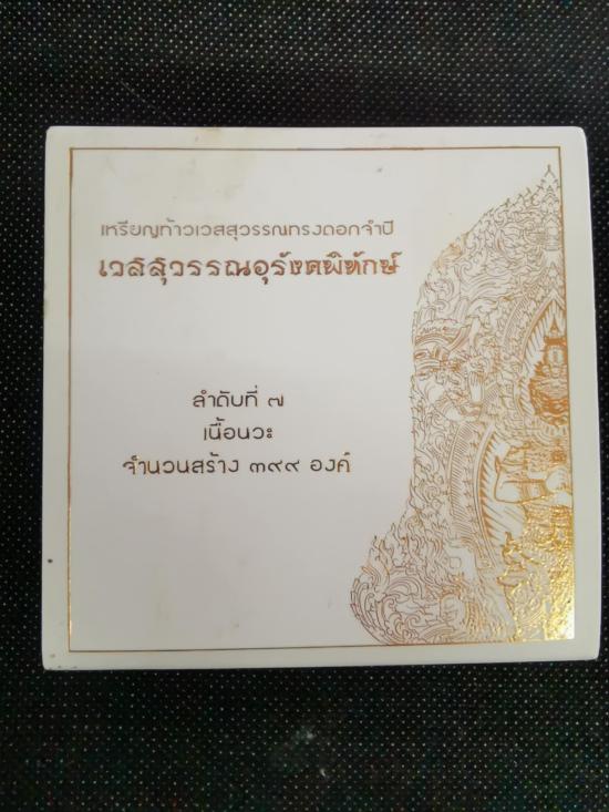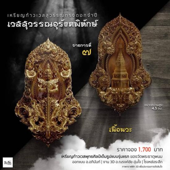 เหรียญพุทธศิลป์ ท้าวเวสสุวรรณ ทรงดอกจำปี เนื้อนวะ รุ่นเวสสุวรรณอุรังพิทักษ์ วัดพระธาตุพนม จ.นครพนม |