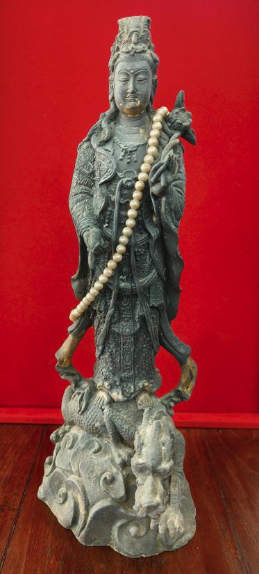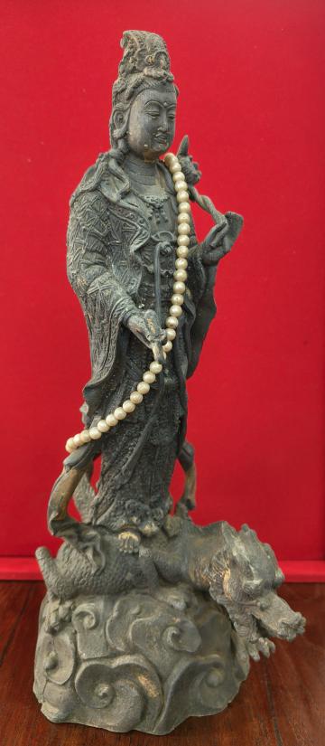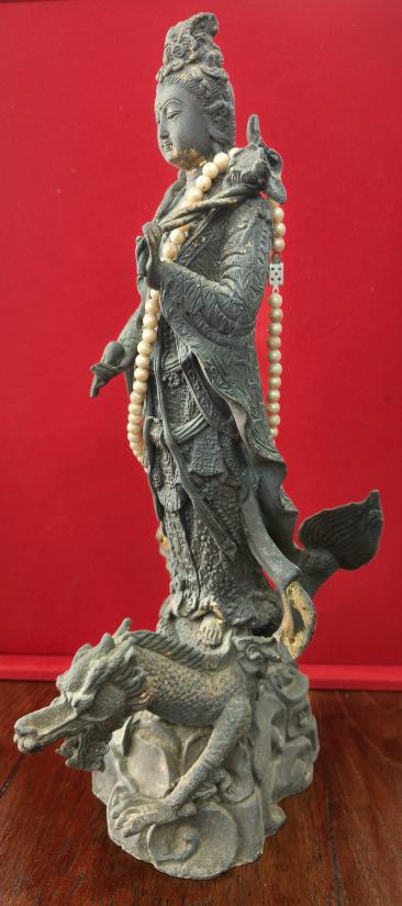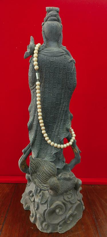 เคาะเดียว+ พระบูชา เจ้าแม่กวนอิม ก้นอุดกระดาษยันต์+ดิน ไม่ทราบที่ครับ สูง33ซม.