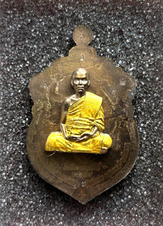 ด้านหลังติดลอยองค์ครึ่งซีกเนื้อนวโลหะองค์ทาทอง สร้างน้อยเพียง 168 เหรียญเท่านั้น