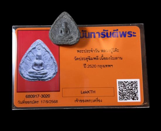 พระผงประจำวัน หลวงปู่โต๊ะ วัดประดู่ฉิมพลี เนื้อผงใบลาน ปี 2520 พร้อมบัตร