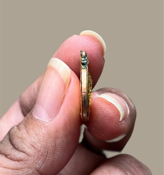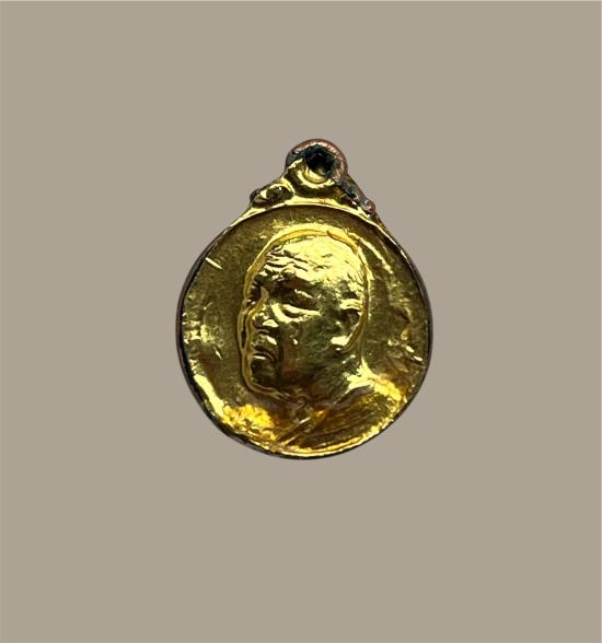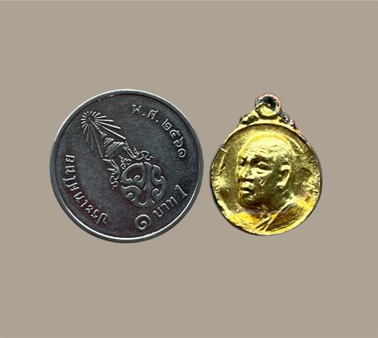 เหรียญกลมเล็กหลวงปู่ฝั้น อาจาโร เนื้อทองแดงหน้ากากทองคำทั้งด้านหน้าและด้านหลัง วัดป่าอุดมสมพร จ.สกลนคร ปี2519 |