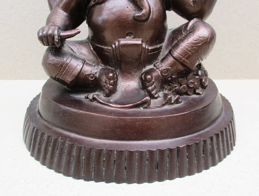 พระพิฆเนศวร์ ฐานกลมแบบฟันเฟือง พิธีเทวมังคลาภิเษก ณ เทวสถานโบสถ ์พราหมณ์ พ.ศ.2538 หน้าตัก 5 นิ้ว เนื้อโลหะรมน้ำตาลมันปู ผิวส วย !!