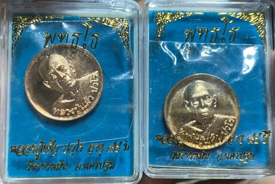 หลวงปู่แผ้ว ปวโร วัดรางหมัน เหรียญรุ่น พุทโธ (เนื้อทองเเดง 2 เหรียญ)