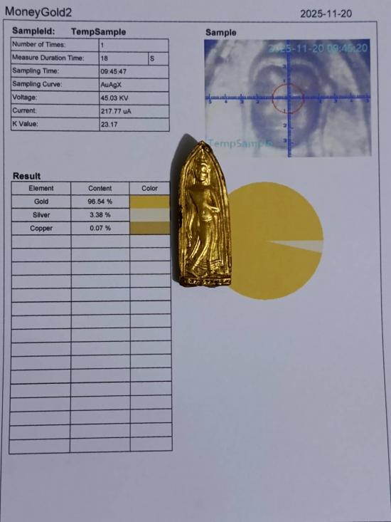 พระลีลาพิมพ์ใหญ่ [ ว่านหน้าทองคำแท้ ] ขนาด 5 ซม.พร้อมใบยิงเปอร์เซ็นต์ทองคำแท้ 96.5 % สวยสมบูรณ์ G-pra ยังไม่มีข้อมูลพระเครื่องรุ่นนี้พิมพ์นี้นะครับ