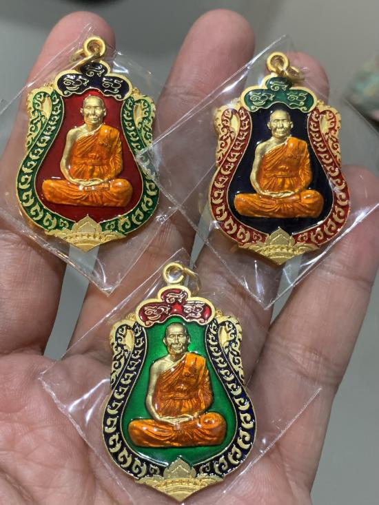 วัดใจ40 เหรียญเสมา7รอบ ฉลองอายุวัฒนะ 84ปี หลวงพ่อจรัญ วัดอัมพวัน จ.สิงห์บุรี ชุดกะหลั่ยทองลงยาสามสี 2ชุด รวม6 องค์
