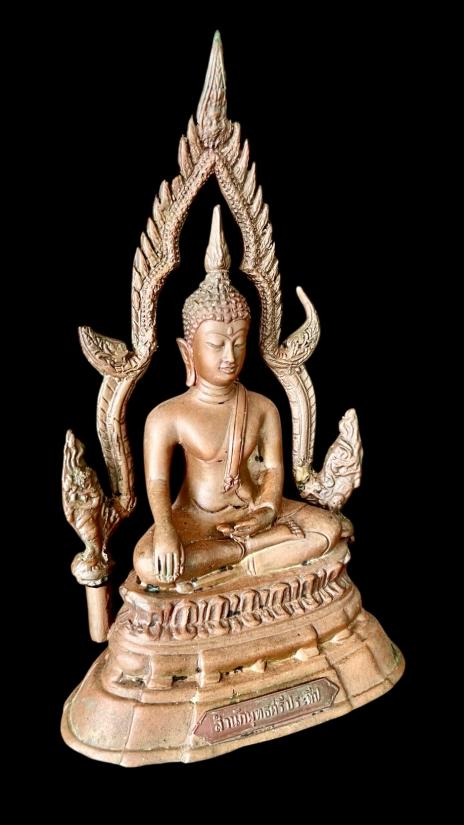 พระพุทธชินราช พิธี 25 ศตวรรษ เนื้อแดงๆ ก้นดินไทยสวยๆ สำนักพุทธศรีประทีป สร้างที่วัดพระศรีรัตนมหาธาตุวรวิหาร(วัดใหญ่) พิษณุโลก ตอกหมายเลข 12 ทั้งซุ้มและองค์พระตรงกันครับ (หลังแปะป้าย อกเลาวิหารหลวงพ่อชินราช พิษณุโลก) เนื้อโลหะทองเหลือง 2 ถอด ซุ้มถอดได้ครับ หน้าตัก 4 นิ้ว ราคาเบาๆครับ