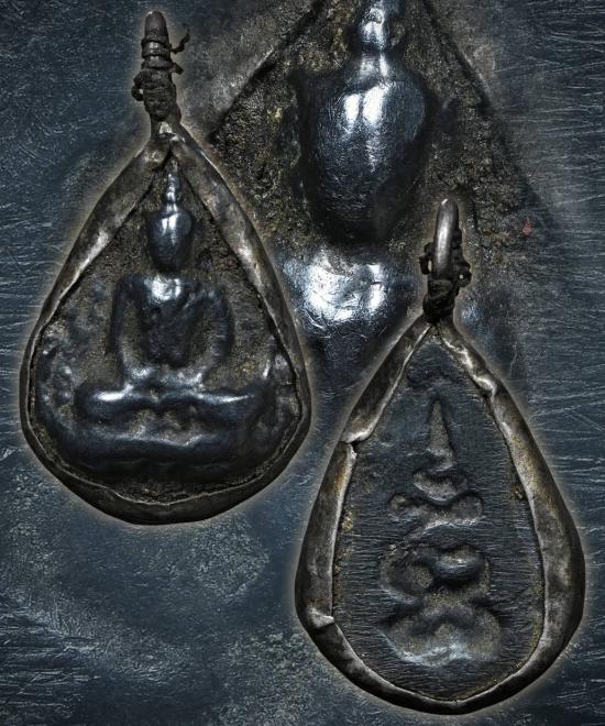 ชื่อพระเครื่อง เหรียญหล่อหยดน้ำ เนื้อเมฆพัด เลี่ยมเงินเก่า ไม่ทราบที่
