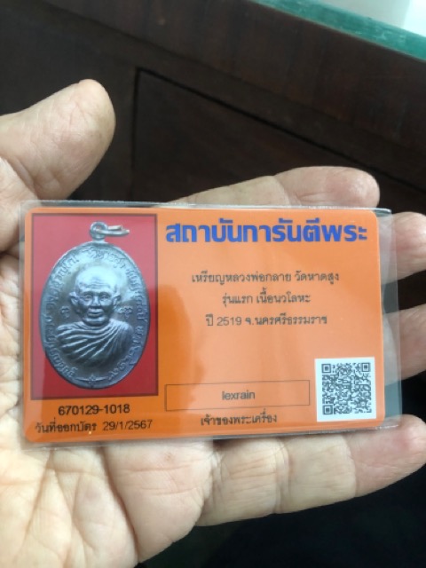 เหรียญหลวงพ่อกลาย วัดหาดสูง รุ่นแรก เนื้อนวะ ปี2519 จ.นครศรีธรรมราช พร้อมบัตร g-pra