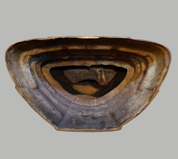 พระพุทธชินราช ขนาดบูชา 9นิ้ว มายเลขประจำองค์ 55 จัดสร้าง ปี2511 เนื้อ 3กษัตริย์ หล่อแบบโบราณที่ใต้ฐานมีดินหุ่นหรือดินเบ้าเป็นดินไทยสีดำแซมน้ำตาลแดงเกาะติดแน่นอยู่ภายใน..