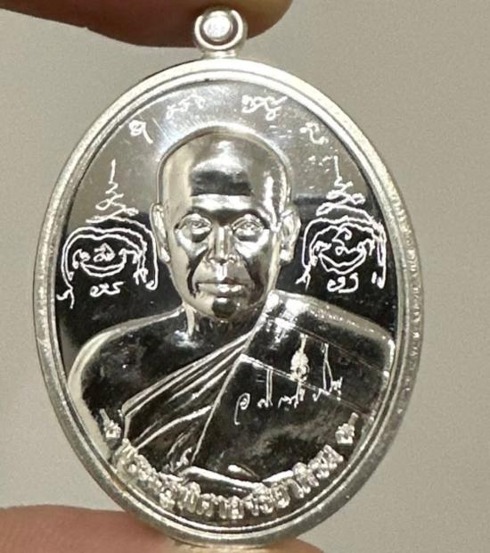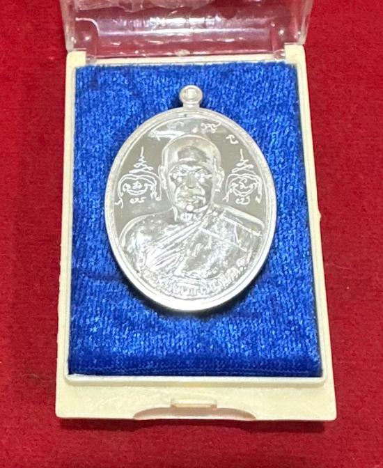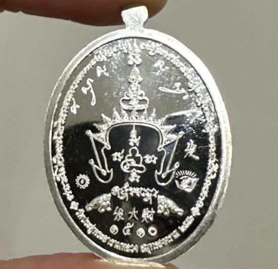 เหรียญหลวงพ่อพระมหาสุรศักดิ์ วัดประดู่ รุ่นรวยแน่นแน่น (ฟาต้าไฉ่ ) เนื้อ เงิน ผิวกระจกเงาๆๆ จารหน้าหลัง จารพุทธซ้อน หมายเลข 1510 ปี 2556 จ.สมุทรสงคราม กล่องเดิม