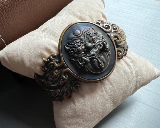 กราบขออนุญาตท่านอาจารย์เฉลิมชัย และท่านประธานฯ นำเสนอ กำไลพระราหู เนื้อบรอนซ์ (วงเล็ก) |