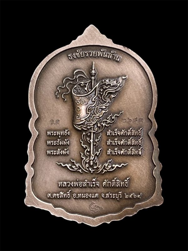 หลวงพ่อสำเร็จศักดิ์สิทธิ์ อ.หนองแค จ.สระบุรี รุ่นรวยพันล้าน ปี 2564 เนื้ออัลปาก้าซาตินลงยาจีวร หมายเลข 2683 ขนาดพระสูง 3.9 ซ.ม. พร้อมกล่องเดิม