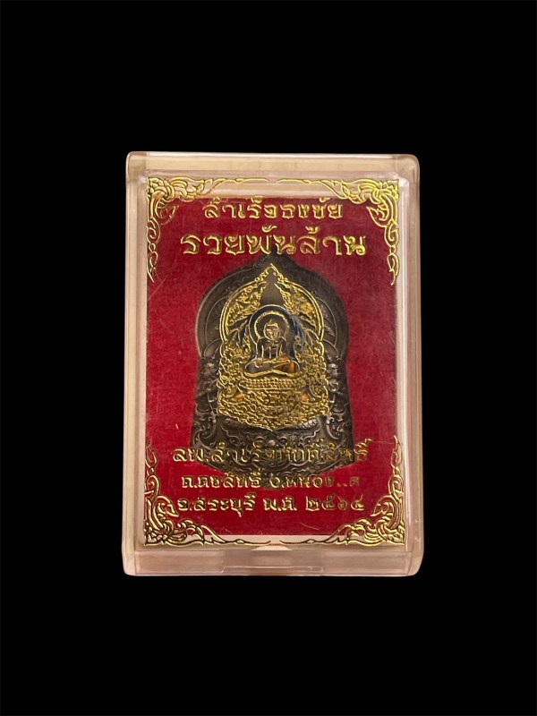 ชื่อพระเครื่อง หลวงพ่อสำเร็จศักดิ์สิทธิ์ อ.หนองแค จ.สระบุรี รุ่นรวยพันล้าน ปี 2564 เนื้ออัลปาก้าซาตินลงยาจีวร หมายเลข 2683 ขนาดพระสูง 3.9 ซ.ม. พร้อมกล่องเดิม