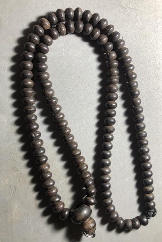 สร้อยประคำไม้แกะจุ่มรักเก่ามากอายุร้อยปี ไม่ทราบที่