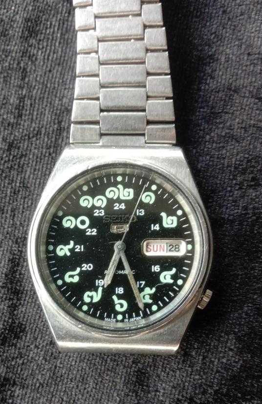 SEIKO AUTOMATIC หน้าปัดสีดำ หลักเลขไทยบนหน้าปัด
