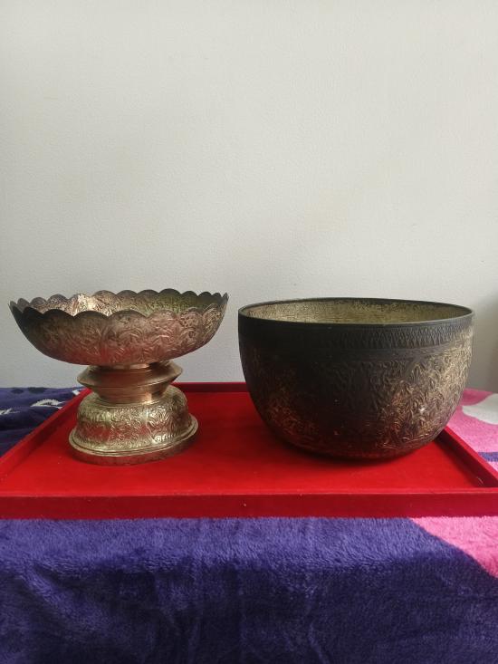 ขันพานเก่า ลายเทพพนม4ด้าน สูง9.3นิ้ว เส้นผ่าศูนย์กลาง9 นิ้ว เหมาะแก่การสะสมครับ |