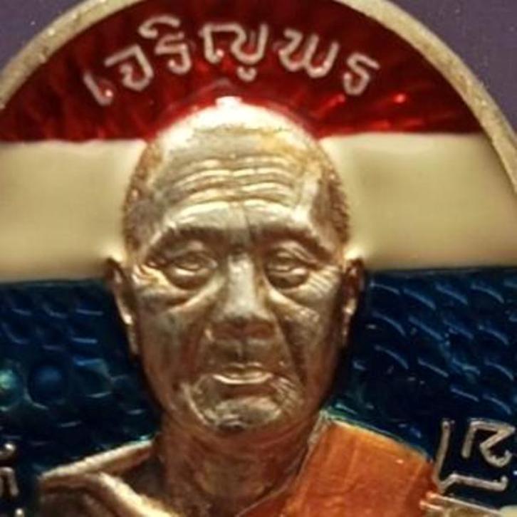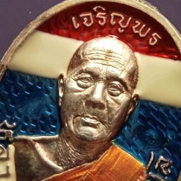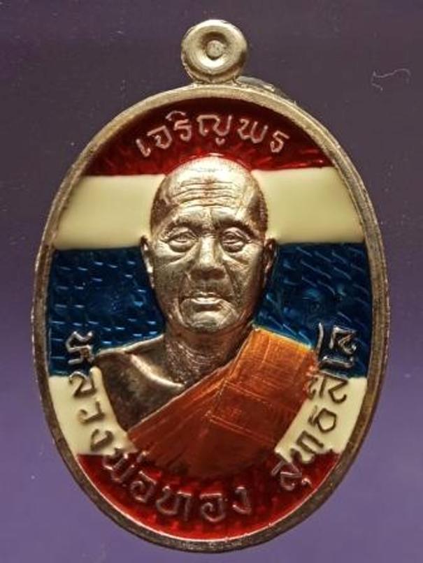 100 เดียว หลวงพ่อทอง ออกวัดแจ้งนอก เจริญพรบน 63 เสาร์ห้า เนื้อเงินลงยา ลายธงชาติ 2 หน้า #60 กล่องเดิม สวยกริบ