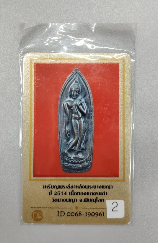 พระนางพญา ปางลีลา พระลีลา วัดนางพญา จังหวัดพิษณุโลก ปี 2514 เนื้อทองแดงรมดำ |