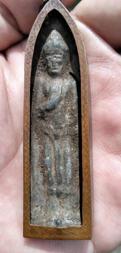 พระร่วงหลังรางปืนสุโขทัย พระเลี่ยมเก่าๆมาเดิมๆเลยครับประกันพระแท้ประกันแท้ เนื้อชินเขียว |
