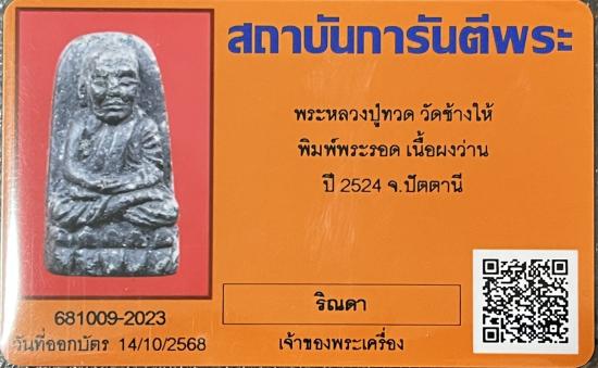 หลวงปู่ทวด วัดช้างให้ พ.ศ.2524 พิมพ์พระรอด หายาก พร้อมบัตรการันตีรับรองจากเว็บ G