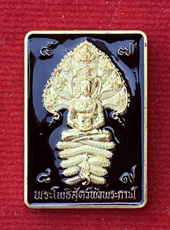 เหรียญพระโพธิสัตว์พังพกาฬ ดวงดี วัดพระมหาธาตุวรวิหาร จ.นครศรีธรรมราช เนื้อทองฝาบาตรลงยาดำ หมายเลข ๑๘๒