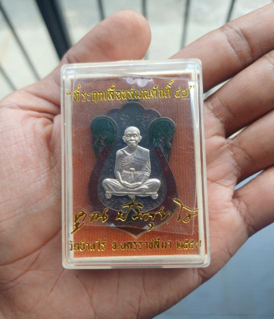 เหรียญเสมาที่ระฤกเลื่อนสมณศักดิ์47 ออกวัดบ้านไร่ปี 57 เนื้อนวะลงยาหน้ากากเงิน หมายเลข 3168
