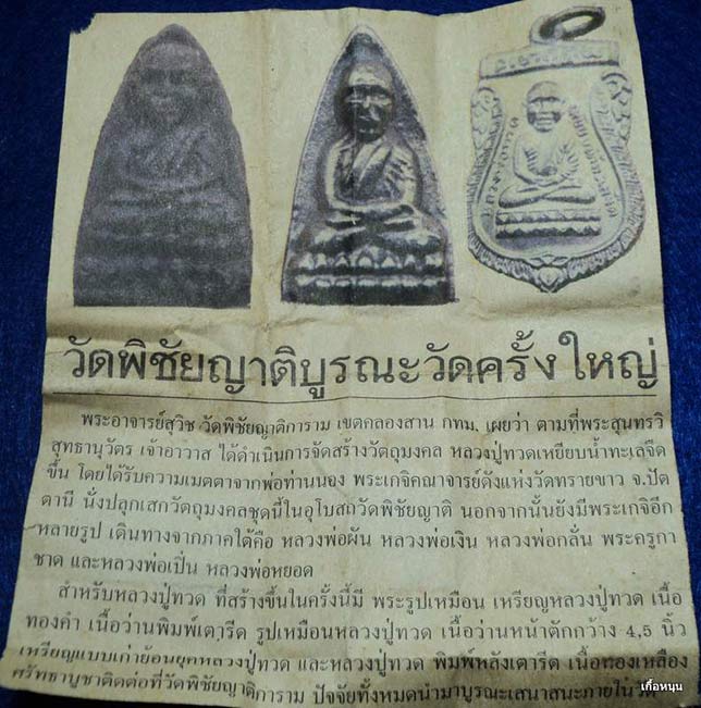 หลวงปู่ทวดเนื้อเมฆพัตร วัดพิชัยญาติ ปี 2538 กทม อาจารย์นองวัดทรายขาวปลุกเสก