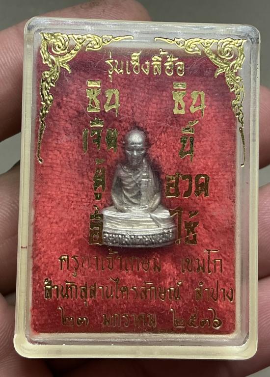 แดงที่ 150 บาท รูปหล่อหลวงพ่อเกษม เขมโก รุ่น เซงลี้ฮ้อ ปี 36 เนื้อเงิน กล่องเดิม
