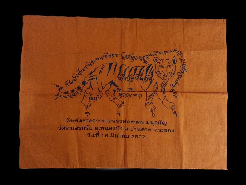 ผ้ายันต์ หลวงพ่อสาคร ศิษย์สร้างถวาย ปี 2537 ขนาด สูงประมาณ 10 นิ้ว กว้างประมาณ 13.5 นิ้ว ครับ |