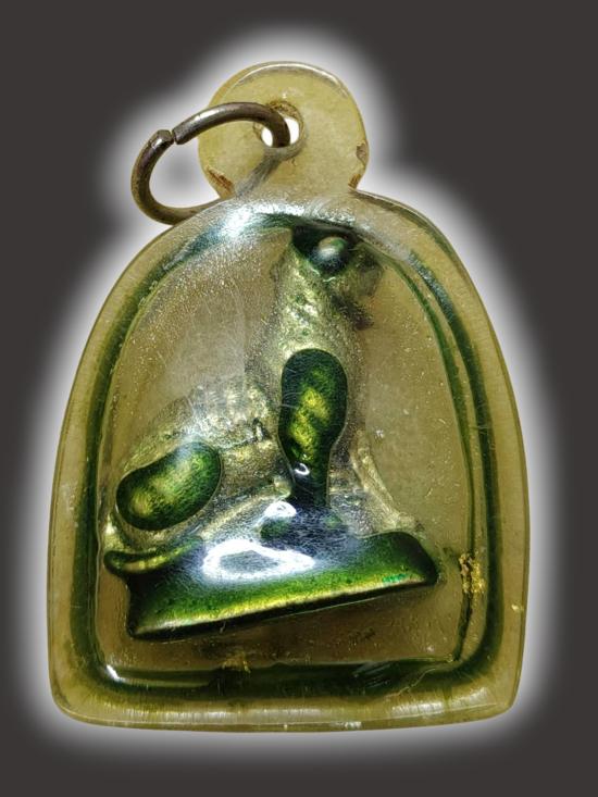 A4087.วัดใจของดี!!! เสือไม่ทราบที่ เลี่ยมเก่าพร้อมสีผึ้งเขียว ปิดทอง เคาะเดียวเเดง |