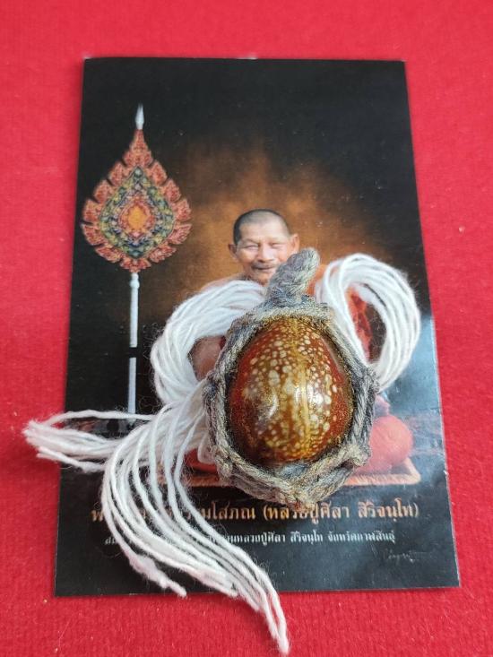 เบี้ยแก้จน หลวงปู่ศิลา หลวงปู่มหาศิลา สิริจันโท สวนสงฆ์แกเปะ วัดโพธิ์ศรีสะอาด จ.กาฬสินธุ์ หลวงปู่เมตตาตั้งชื่อให้ พร้อมสายสิญญ์ |
