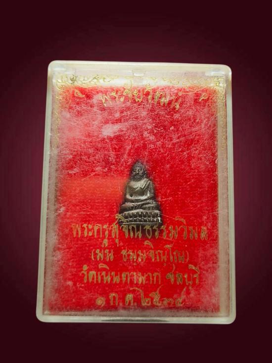 พระชัยวัฒน์สุคโต เนื้อนวะโลหะ ปี 2534 หลวงปู่ม่น วัดเนินตามาก ชลบุรี พร้อมกล่องเดิม